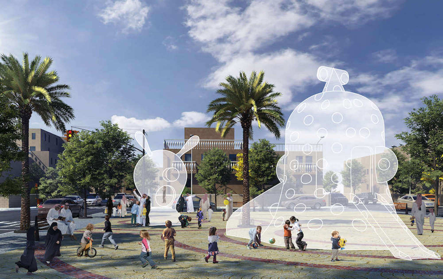 Joyous Gardens provide spaces for creative play as a core part of the healthy and vibrant urban life in Riyadh.